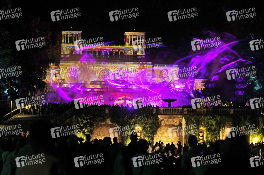 Lasershow bei der XXI. Potsdamer Schlössernacht 2019 im Schlosspark Sanssouci. Potsdam, 17.08.2019