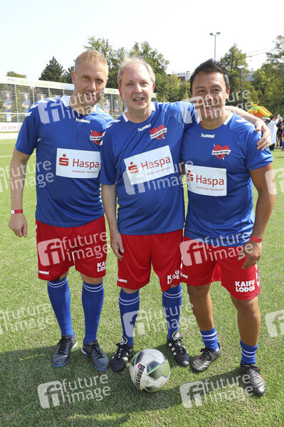 Ivan Klasnic, Olli Dittrich und Rodolfo Esteban Cardoso beim Benefiz-Fußballspiel 'Kicken mit Herz' 2019 im Stadion Hoheluft. Hamburg, 25.08.2019