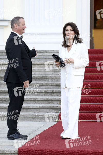 Iris Berben bei der Ankunft zum festlichen Abendessen zur Würdigung des 60-jährigen Jubiläums der Aufnahme diplomatischer Beziehungen zwischen der Bundesrepublik Deutschland und Israel am 12. Mai 1965 im Schloss Bellevue. Berlin, 12.05.2025