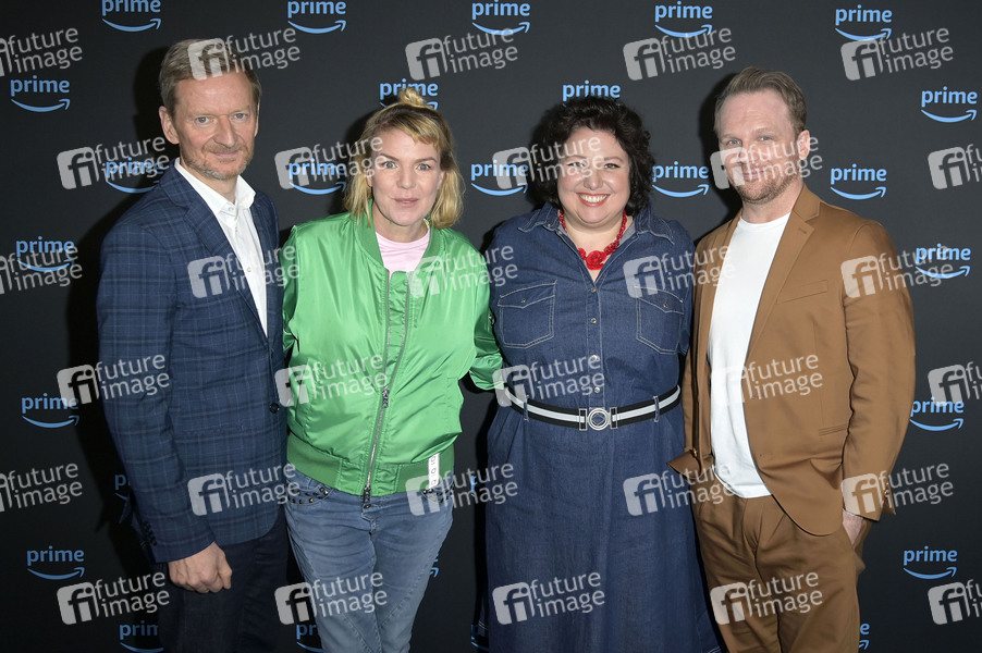 Michael Kessler, Mirja Boes, Meltem Kaptan und Ralf Schmitz bei der Jahrespressekonferenz Prime Video Presents 2024 im WECC - Westhafen Events & Convention Center. Berlin, 27.02.2024