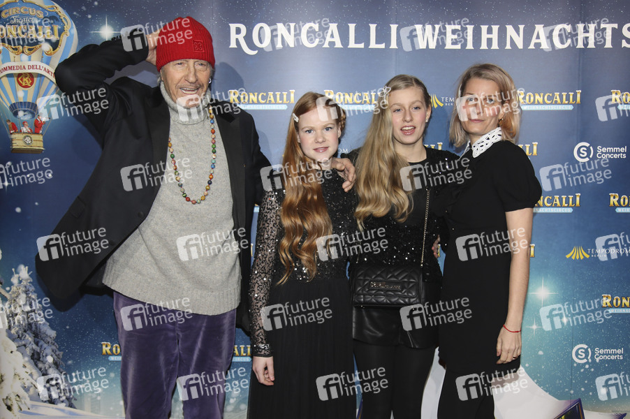 Reiner Schöne mit Ehefrau Anja Schöne und den Kindern Charlotte-Sophie und Olivia bei der Premiere des 21. Original Roncalli Weihnachtscircus 2025 im Tempodrom. Berlin, 19.12.2025