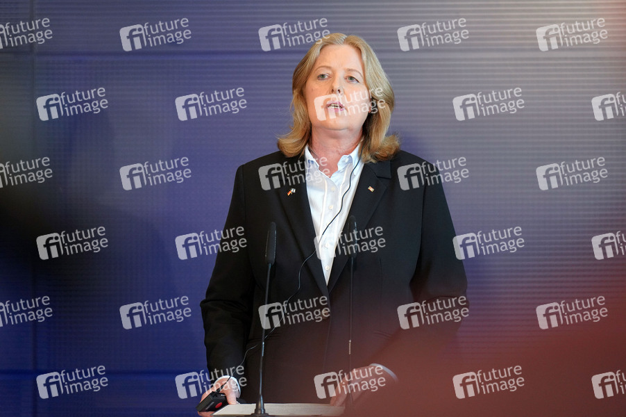Bärbel Bas bei einem Pressestatement zum Besuch des israelischen Parlamentspräsidenten im Deutschen Bundestag. Berlin, 08.04.2024