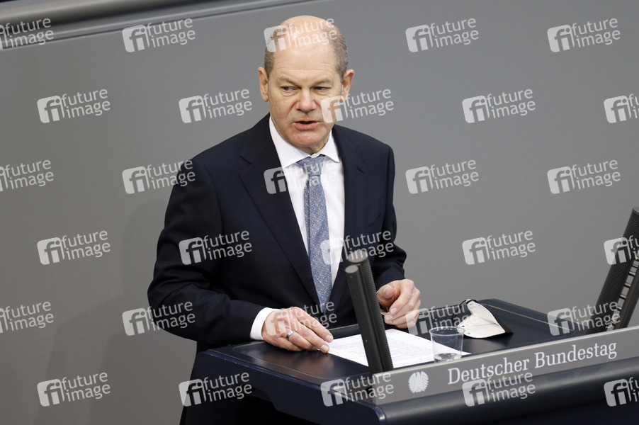 Olaf Scholz in der 210. Sitzung des Deutschen Bundestages im Reichstagsgebäude. Berlin, 12.02.2021
