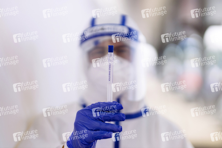 Wegen der Corona-Krise bzw. Corona-Pandemie werden im Corona-Testzentrum am Köln Bonn Airport Reiserückkehrer aus Risikogebieten auf Corona getestet. Köln, 11.08.2020