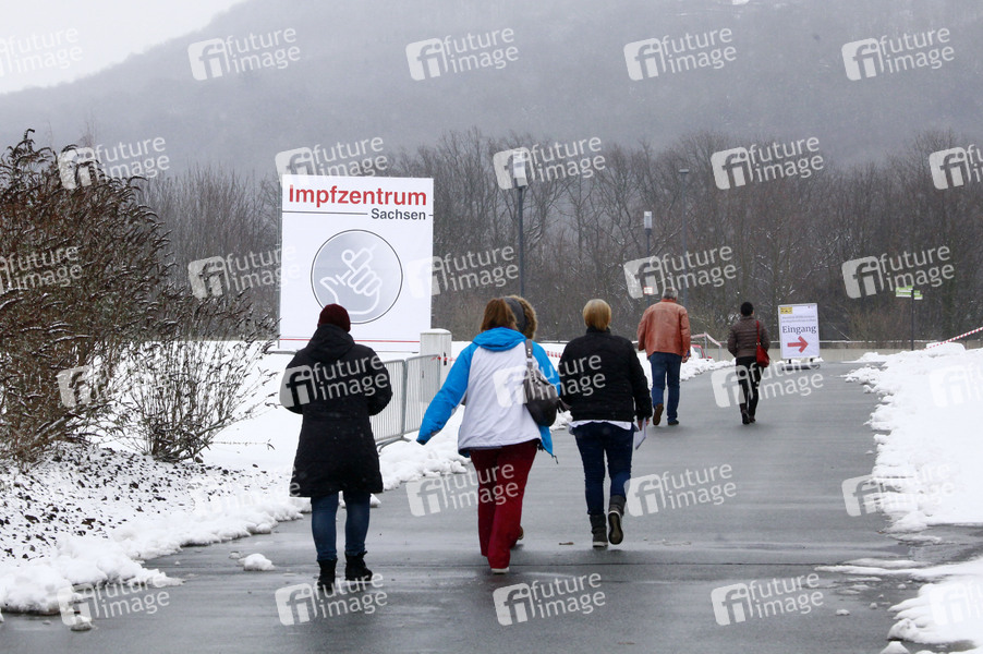 In Löbau haben am Montag die stationären Impfungen gegen das Corona-Virus im Impfzentrum Landkreis Görlitz in der Messehalle Löbau begonnen. Da noch nicht genügend Impfstoff vorhanden ist, wird in der ersten Woche nur medizinisches Personal oder Mitarbeiter von Pflegediensten geimpft. Löbau, 12.01.2021