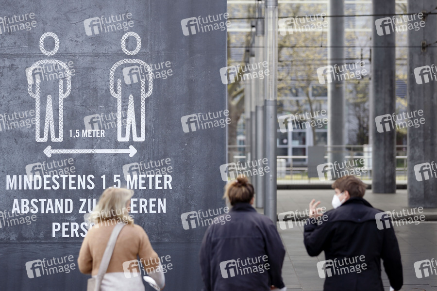Plakate, Plakat, Mindestabstand, Maskenpflicht, Social Distancing, Mund-Nasen-Schutz, Messegelände, Fußgängerzone, Notbremse, Notbremsen, Corona-Notbremse, Bundes-Notbremse, Bundes-Lockdown, Corona, Virus, Coronavirus, Corona-Virus, Coronaviren, Viren, Infektion, Infektionsschutz, Infektionsschutzgesetz, Kontaktbeschränkung, Kontaktbeschränkungen, Covid-19, Covid19, Coronazahlen, Corona-Zahlen, Coronapolitik, Ausnahmezustand, Coronamaßnahmen, Corona-Maßnahmen, Inzidenz, Inzidenzwert, Pandemie, 7-Tage-Inzidenz, Testpflicht, Testangebotspflicht, Coronatest, Impfung, Impfkampagne, Durchimpfen, Impfen, Impfmittel, Gesundheitspolitik, RKI, R-Wert, Infektionen, Sieben-Tage-R-Wert, Impfzentren, Herdenimmunität, Quarantäne, Mindestabstand, Maskenpflicht, Lockdown, Lock Down, Teil-Lockdown, Bundes-Lockdown, harter Lockdown, Notbremsengesetz, Brücken-Lockdown, Brückenlockdown, FFP2-Maske, FFP2-Masken, FFP2-Maskenpflicht, Mund-Nasen-Schutz, medizinische Maske, Gesichtsmaske, Maske tragen, Lockdown Light, Schutzmaske, zweite Welle, dritte Welle, Corona-Regeln, Coronaregeln, Coronaepidemie, Corona-Epidemie, Wocheninzidenz, Pandemie-Gesetz, Infektionslage, Infektionsgeschehen, Schutzmaßnahmen, Gesellschaft, Coronaschutzverordnung, Corona-Schutzverordnung, Gesundheitssystem, Infektionszahlen, OP-Maske, OP-Masken, medizinische Masken, Gesichtsmasken, Gesichtsmaske, Maskenmüll, Mundschutz, Werbekampagne, Symbolbild, Symbolfoto