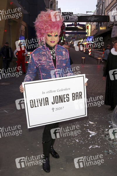Olivia Jones bei der Mahnwache und Kranzniederlegung zum Erhalt der Kiez-Kultur in der Großen Freiheit auf der Reeperbahn. Hamburg, 07.05.2020