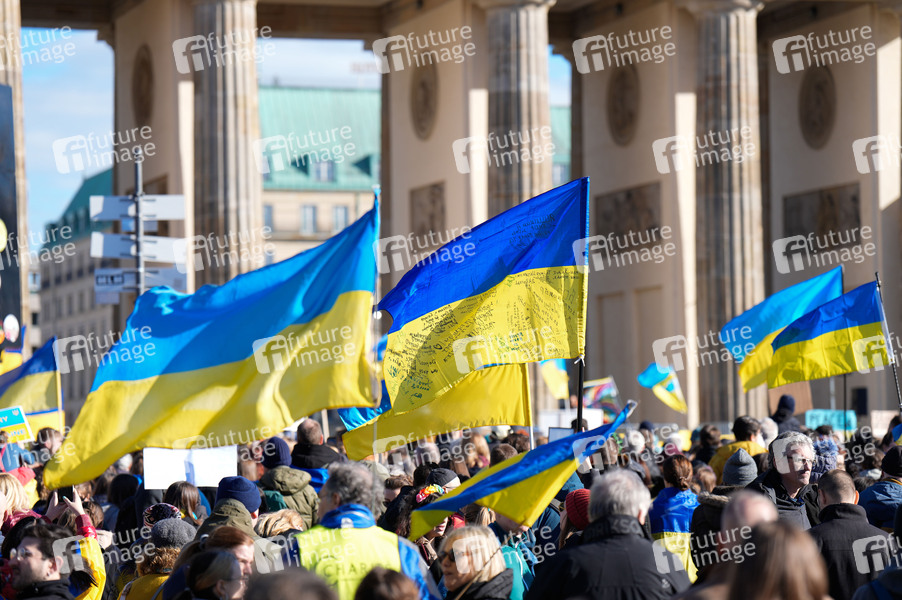 Anlässlich des zweiten Jahrestages des Beginns des Krieges von Russland gegen die Ukraine versammelten sich mehrere tausend Menschen bei einer Solidaritätsdemontration am Brandenburger Tor. Berlin, 24.02.2024