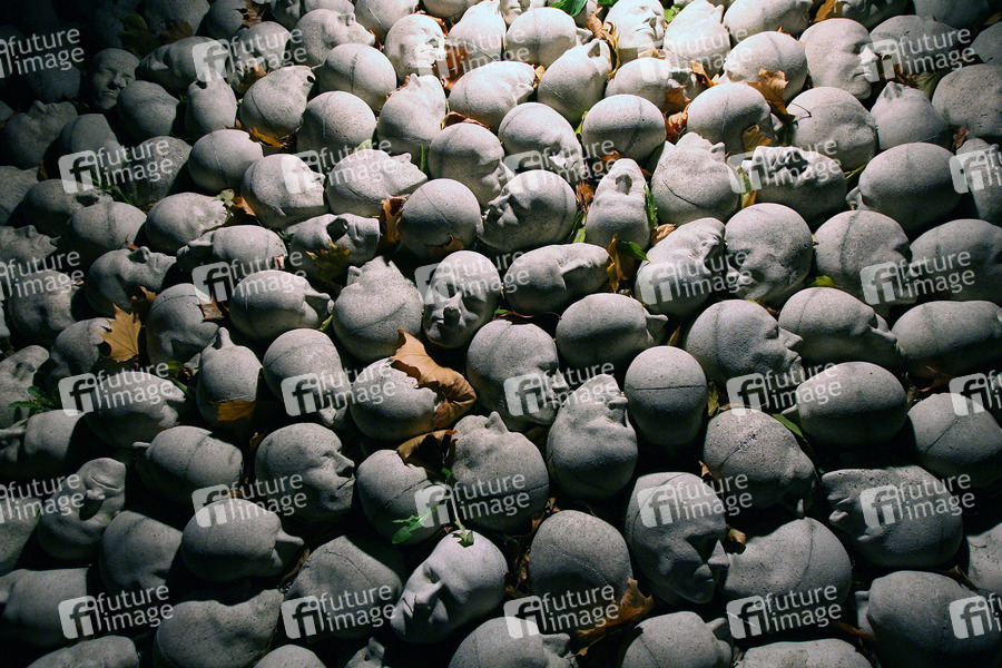 Kunstwerk nach dem Kopf des Künstlers 1980-1994, Feld mit weißen Köpfen aus Stein