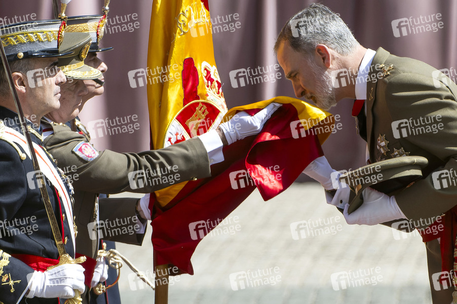 Ausbildung, General Military Academy, Militärakademie, Zaragoza, Militär, Soldaten, Kadetten, Soldatin, Kadettin, Zeremonie, Tradition, Treuebekundung, Fahneneid, Gelöbnis, Vereidigung, Adel, König von Spanien, Staatsoberhaupt, Fürst von Asturien, Fürst von Girona, Felipe de Borbón, Monarch, Royal