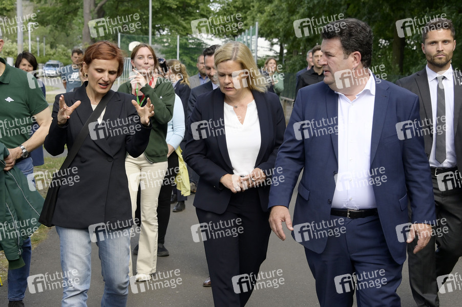 Katja Kipping, Nancy Faeser und Hubertus Heil beim Besuch der Gemeinschaftsunterkunft für Geflüchtete in Berlin-Spandau. Berlin, 14.06.2022