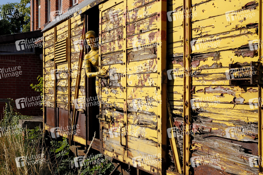 Door Art: Waggontür Bodypainting und Photoshooting mt Model Anna-Lena auf einem stillgelegten Bahnhof. Salzhemmendorf, 20.07.2016 - Ein Projekt des Bodypaint Künstlers Jörg Düsterwald und des Fotografen Tschiponnique Skupin