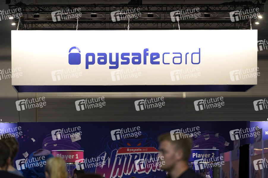 Paysafecard auf der Gamescom 2022 auf dem Gelände der Kölnmesse. Die Gamescom ist die weltweit größte Messe für Computer- und Videospiele, gemessen nach Ausstellungsfläche und Besucheranzahl. Zahlreiche Hersteller aus aller Welt präsentieren hier ihre neue Soft- und Hardware. Köln, 28.08.2022