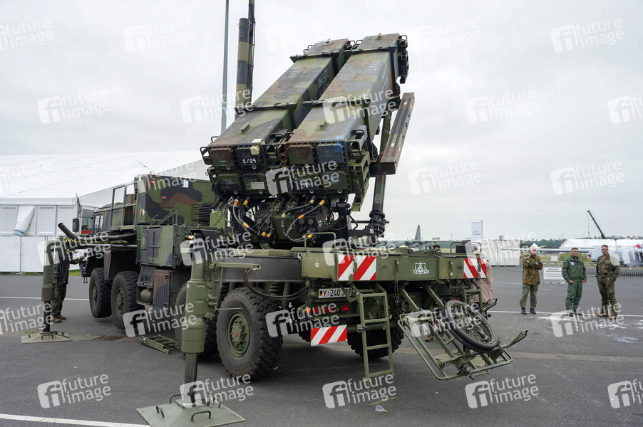 MIM-104 Patriot der Bundeswehr bei der ILA Berlin auf dem ILA-Gelände am Flughafen BER Berlin-Brandenburg. Berlin, 03.06.2024