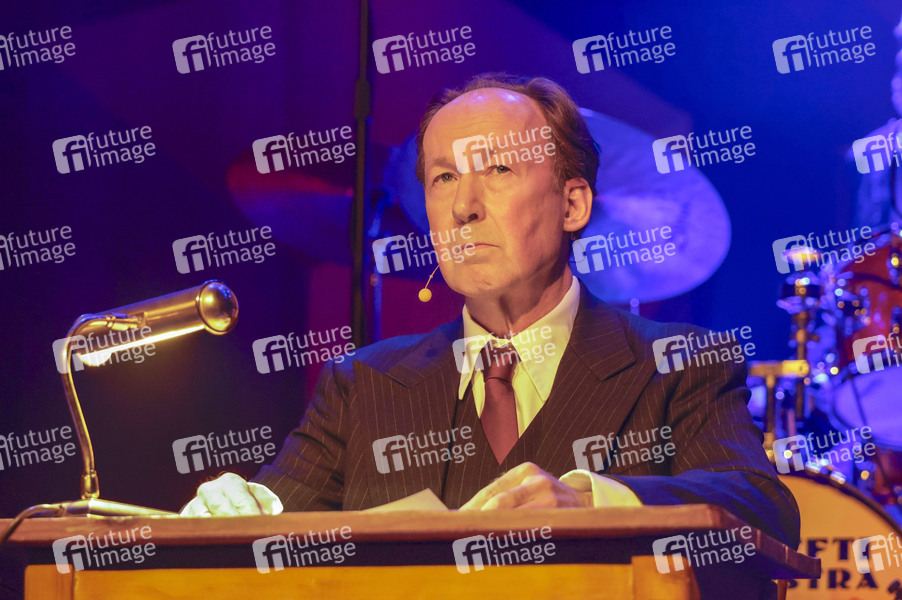 Ulrich Noethen und das Moka Efti Orchestra bei der musikalischen Lesung 'Der nasse Fisch' im Theater am Tanzbrunnen. Köln, 12.03.2025