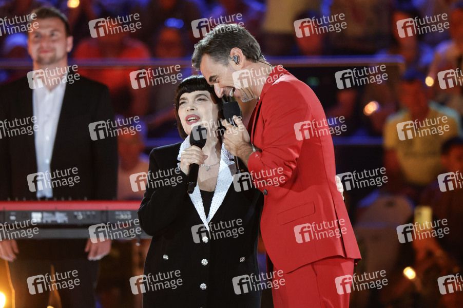Mireille Mathieu und Florian Silbereisen in der TV-Show 'Schlagerbooom Open Air 2025 - Die Berge leuchten!' live aus dem Stadion Kitzbühel. Kitzbühel, 21.06.2025
