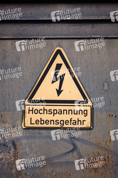 Ein Warnhinweis 'Hochspannung Lebensgefahr' an einem Stromkasten. Köln, 11.07.2020
