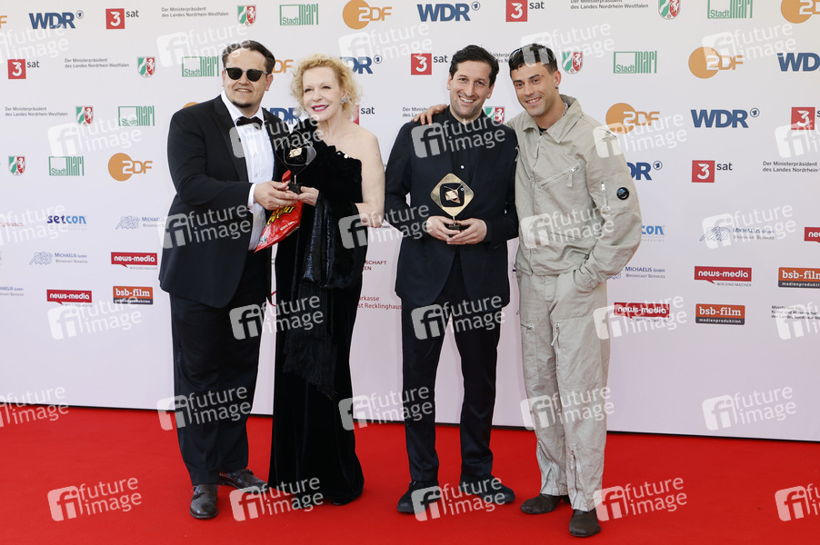 Martin Danisch, Sunnyi Melles, David Hadda und Aaron Altaras bei der 61. Verleihung des Grimme Preises 2025 im Theater Marl. Marl, 04.04.2025