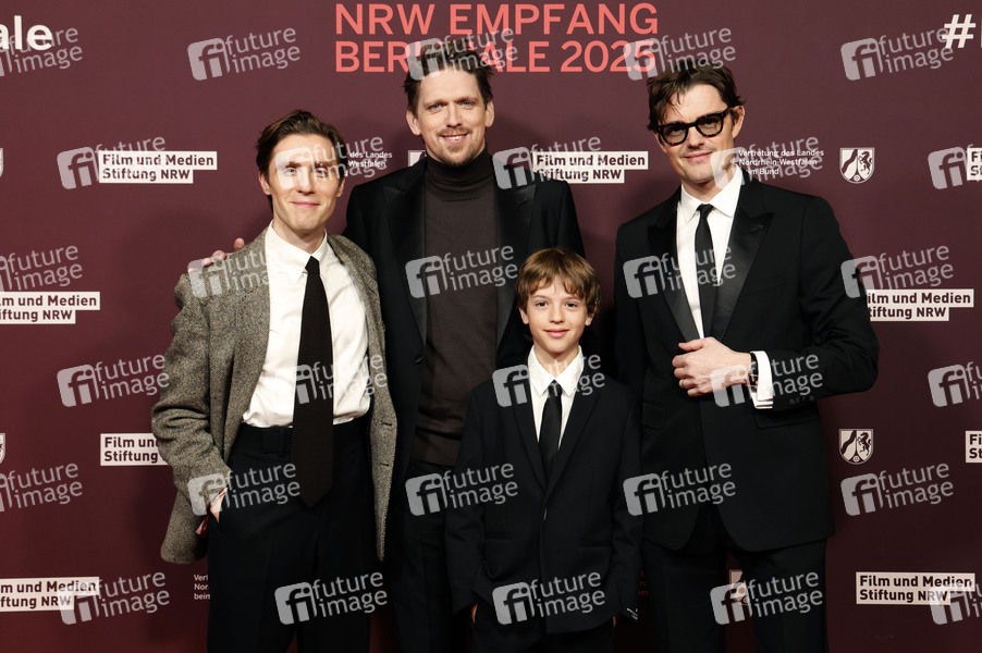 Jack Farthing, Jan-Ole Gerster, Dylan Torrell und Sam Riley beim 22. NRW Empfang des Landes NRW und der Film- und Medienstiftung NRW im Rahmen der Berlinale 2025 in der Vertretung des Landes Nordrhein-Westfalen. Berlin, 16.02.2025