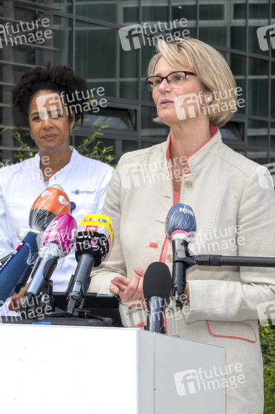 Prof. Dr. Marylyn Addo, Oberärztin und Leiterin Sektion Infektiologie, und Anja Karliczek beim Informationsbesuch zu aktuellen Forschungsaktivitäten bezüglich des COVID-19 Virus im Universitätsklinikum (UKE) Hamburg-Eppendorf. Hamburg, 14.07.2020