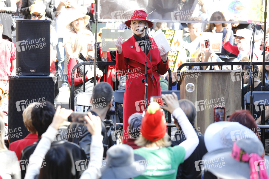 James Fonda spricht bei der Fire Drill Fridays Kundgebung gegen den Klimanotfall vor dem Rathaus. Los Angeles, 07.02.2020