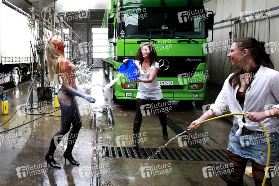 Photoshooting mit den Models Anastasia, Vanessa, Melanie und Julia und dem Bodypaint Model Anastasia in einer Auto- und LKW-Waschanlage in Lauenau. Bodypaint Künstler: Jörg Düsterwald