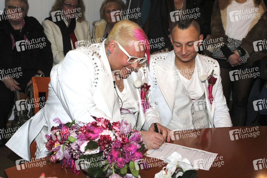 Hochzeit von Sven Florijan mit Sebastian 'Sebi' Krueger im Standesamt Eppendorf. Hamburg, 19.03.2013