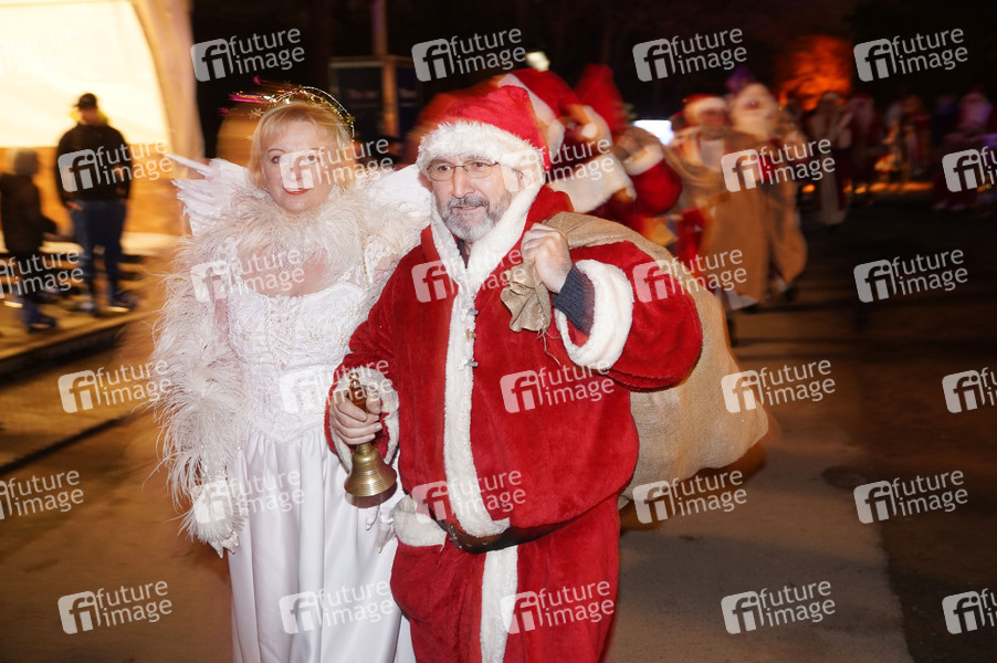 35 Weihnachtsmänner und Engel bei der Weihnachtsmannvollversammlung der Berliner Weihnachtsmannzentrale bei 'Weihnachten im Tierpark' im Tierpark. Berlin, 01.12.2019