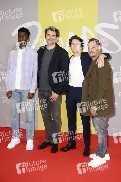 Stephane Bak, Sebastian Schipper, Fionn Whitehead und Moritz Bleibtreu bei der Premiere des Kinofilms 'Roads' im Kino International. Berlin, 08.05.2019