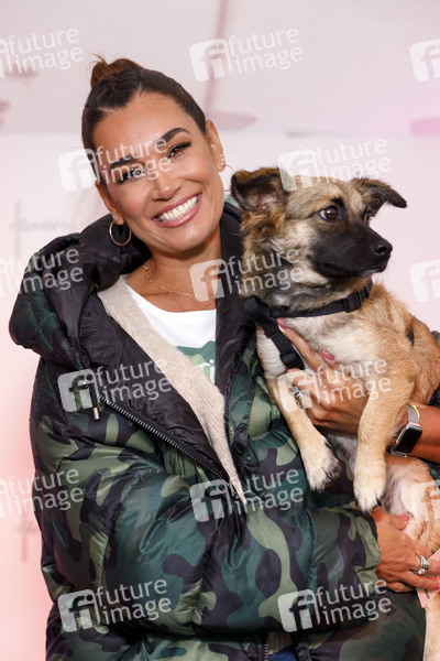 Jana Ina Zarrella mit Hund Cici beim Pressetermin zur Charity-Initinative 'Tierisch engagiert' unterstützt von Fressnapf im Tierheim Köln-Zollstock. Für die Aktion 'Freundschaft verbindet' hat sie ein Freundschaftsarmband designt, dessen Erlöse direkt an den Tierschutz und in tiertherapeutische Einrichtungen fließt. Köln, 29.09.2020
