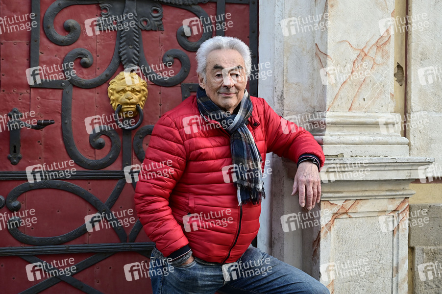 Giso Weißbach beim Spaziergang zum Set von 'Sachsens Glanz und Preußens Gloria'. Giso Weißbach feiert im nächsten Jahr sein 60-jähriges Bühnenjubiläum. Der gebürtige Erzgebirger kehrte am 08.03.2024 an das Set des sechsteiligen Fernsehfilms 'Sachsens Glanz und Preußens Gloria' zurück, welcher auf historische Ereignisse der Jahre 1697 bis 1763 zurückgeht. Die Literaturverfilmung, basierend auf dem Roman von Józef Ignacy Kraszewski, wurde unter Regie von Hans-Joachim Kasprzik in den Jahren 1982-1985 produziert. Die Szene im Siebenjährigen Krieg, in der Giso Weißbach alias Leutnant Sigismund von Miltitz um die Gunst seiner großen Liebe Komtesse Pepita von Nostitz, gespielt von Ulrike Kunze (Mai), wirbt, wurde 1985 vor dem heutigen Kulturhistorischen Museum auf der Neißstrasse in Görlitz gedreht. Görlitz, 08.03.2024