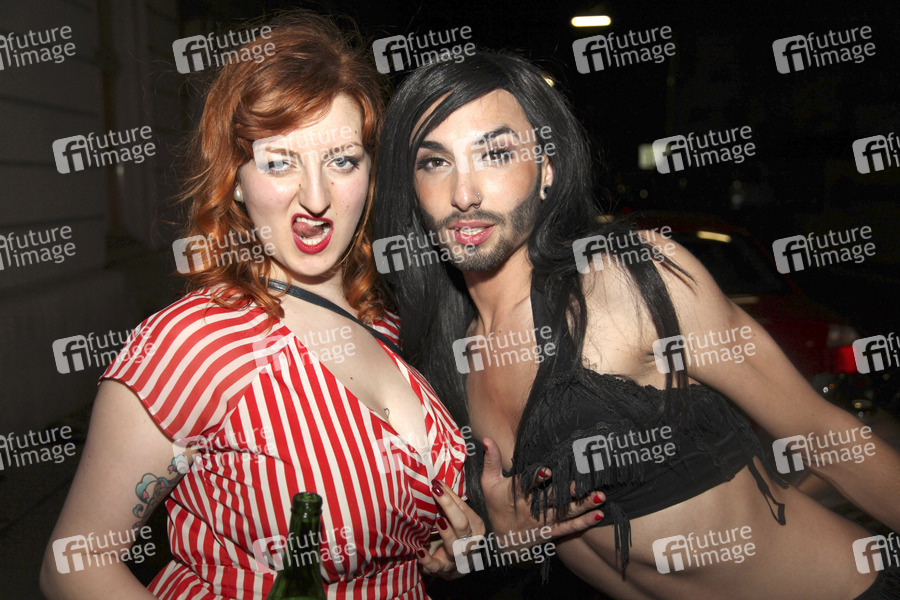 Mitzi May und Conchita Wurst in der Pause der Burlesque Show 'Kitty Revue' in der Arena Bar. Wien, 11.06.2011