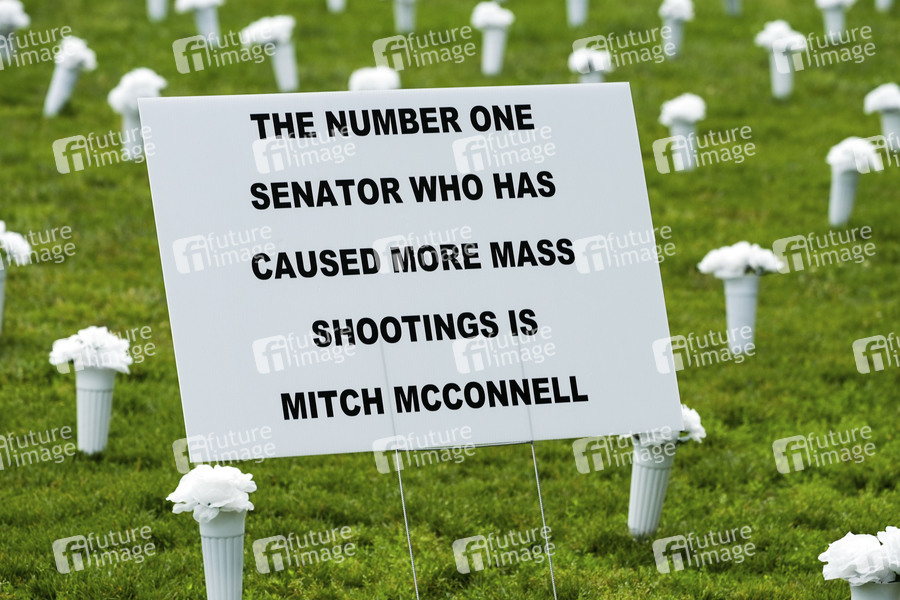 Blumen für die Opfer von Schießereien am Washington Monument . Tausende Menschen demonstrieren beim March for Our Lives gegen die landesweite steigende Waffengewalt und fordern den Kongress auf, Schritte zu ihrer Beendigung zu unternehmen. March for Our Lives wurde von Überlebenden der Massenschießerei 2018 an einer High School in Parkland, Florida gegründet. Washington, 11.06.2022