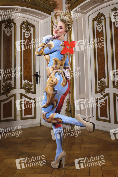 Barock Bodypainting mit Model Daniela im Schloss Hasperde. Hasperde, 25.02.2014 - Body Paint Künstler: Jörg Düsterwald, Frisur und Make-up: Janina Horstmann