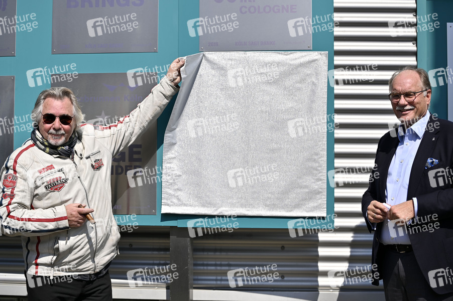 Tommy Engel und Bernhard Conin beim Pressetermin zu Tommy Engels 10. Jubiläum als Solokünstler mit der Enthüllung seiner Ehrentafel an der Wall of Fame am Theater am Tanzbrunnen. Köln, 28.04.2022