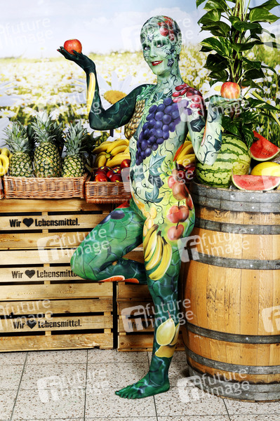 Bodypainting Meets Business, Body-Painting, Erotik, Frau, Mädchen, nackt, Akt, weiblich, Körperkunst, Körperfarben, Farbe, Bemalung, Kunst, Malerei, Fotografie, Beruf, Obst, Früchte, gesund, Ernährung, Apfel, Banane, Ananas, Melone, Joerg Dewaldo Duesterwald, body painting, erotic, woman, girl, nude, female, body art, colors, photography, profession, fruit, fruits, healthy, nutrition, apple, banana, pineapple, melon
