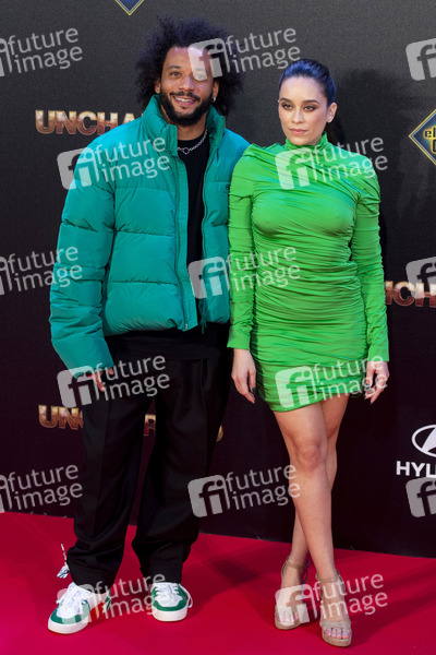 Marcelo Alves mit Ehefrau Clarice Alves bei der Premiere des Kinofilms 'Uncharted' im El Hormiguero. Madrid, 08.02.2022