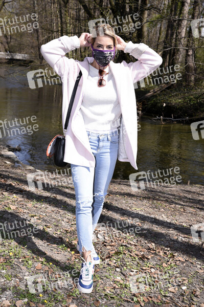 Moderatorin, Entertainment, Prominenz, Celebrities, Celebrity, Fotoshooting, Photoshooting, Coronakrise, Corona-Krise, Corona, Covid-19, Coronavirus, Coronaviren, Corona-Virus, Corona-Viren, Ausgangasbeschränkung, Ausgangsbeschränkungen, Coronamaßnahmen, Ansteckungsgefahr, Abstandhalten, Abstandsregel, Abstandsregeln, Vorbeugung, Prävention, Ausnahmezustand, Corona-Schutz, Maßnahmen, Coronamaßnahmen, Corona-Regeln, Corona-Maßnahmen, ausbleibende Kunden, geschlossene Geschäfte, Atemschutz, Atemschutzmaske, Virenschutz, Schutzmaske, Mundschutz, Mund-Schutz, Mund-Nase-Schutz, Mund-Nasen-Schutz, MNS