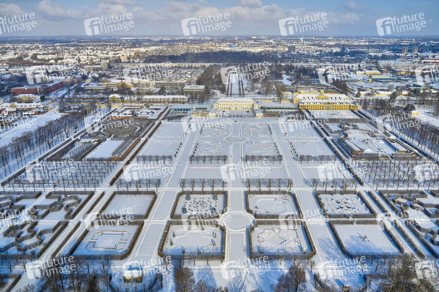 Luftaufnahme, Großer Garten, Barockgarten, Sehenswürdighkeit, Sightseeing, Tourismus, Veranstaltungsort, Berggarten, Winter, Schnee