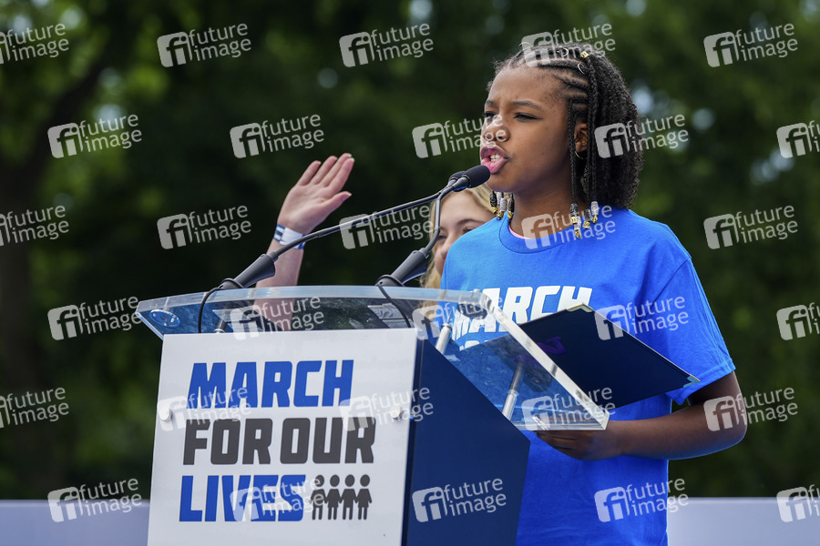 Yolanda Renee King, Enkelin von Martin Luther King, spricht auf dem March for Our Lives. Tausende Menschen demonstrieren gegen die landesweite steigende Waffengewalt und fordern den Kongress auf, Schritte zu ihrer Beendigung zu unternehmen. March for Our Lives wurde von Überlebenden der Massenschießerei 2018 an einer High School in Parkland, Florida gegründet. Washington, 11.06.2022