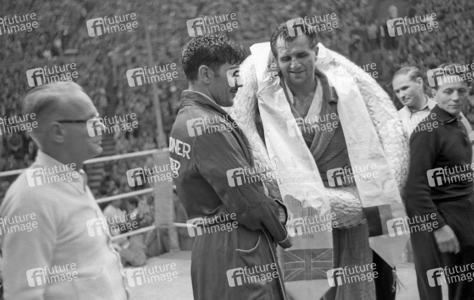 Europameisterschaftskampf im Box-Schwergewicht Jack Gardner (England) gegen Hein ten Hoff (Deutschland) in der Berliner Waldbühne