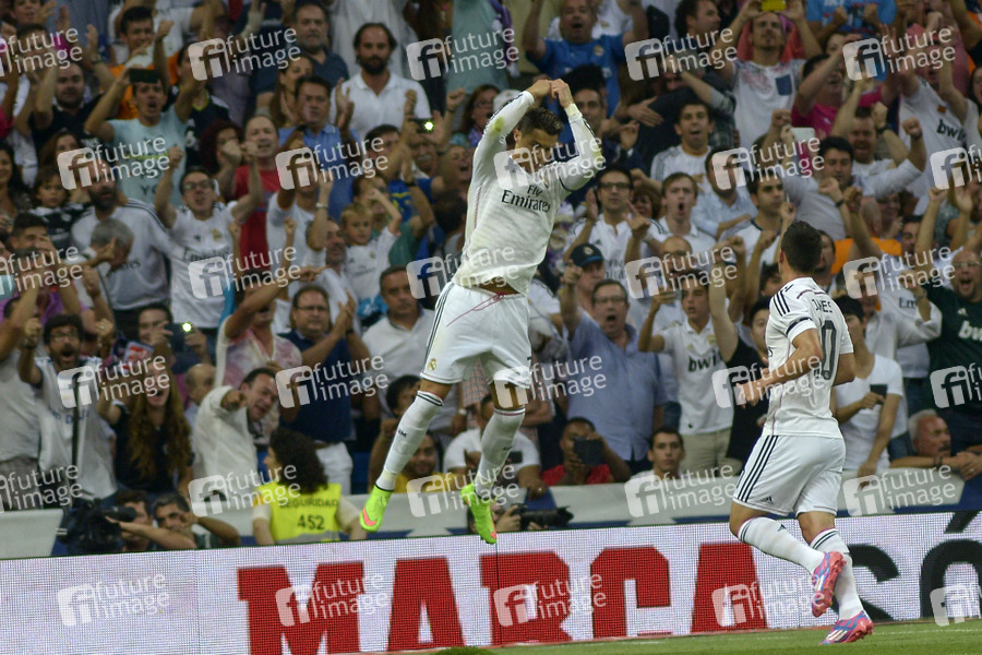 Cristiano Ronaldo und James Rodriguez beim Liga BBVA Match Atlético Madrid gegen Real Madrid (2:1) im Estadio Santiago Bernabéu. Madrid, 13.09.2014