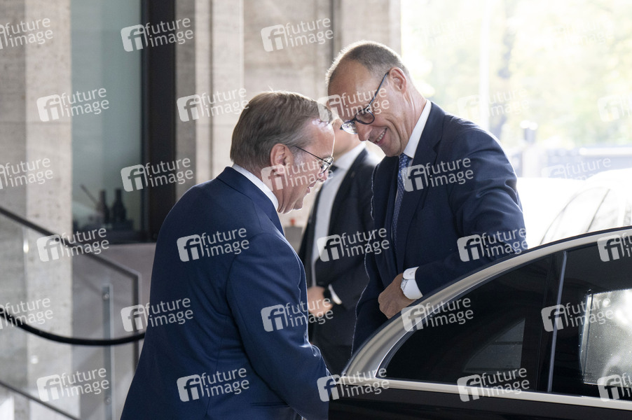 Boris Pistorius und Friedrich Merz bei der Ankunft zur 14. Sitzung des Bundeskabinetts im Bundesministerium der Verteidigung. Berlin, 27.08.2025