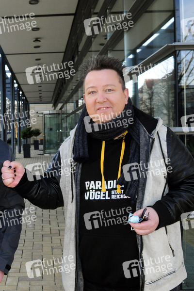 Sebastian Krumbiegel von Die Prinzen bei der Ankunft zur MDR Musikshow 'Ostern bei uns - Live!'. Leipzig, 03.04.2021