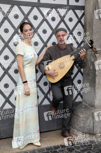 Anna Lukshina und Jakov Steiman beim Konzert im Flüsterbogen mit Gesang und Laute im Haus zum Flüsterbogen am Untermarkt. Görlitz, 22.08.2021