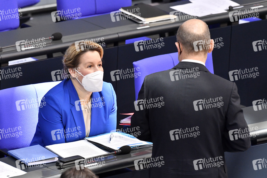 Franziska Giffey und Olaf Scholz in der 210. Sitzung des Deutschen Bundestages im Reichstagsgebäude. Berlin, 12.02.2021