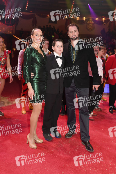 Jana Mandana Lacey-Krone mit Sohn Alexis Henry Lacey-Krone und Ehemann Martin Lacey jr. bei der Premiere vom 1. Winterprogramm 2019 des Circus Krone im Kronebau. München, 25.12.2019