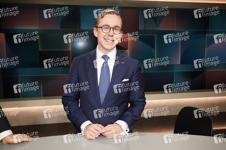 Philipp Amthor in der ARD-Talkshow 'hart aber fair' im Studio Adlershof. Berlin, 24.02.2025