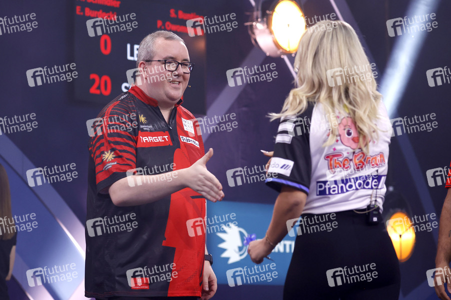 Stephen Bunting und Evelyn Burdecki bei der Promi-Darts-WM 2025 im Maritim Hotel. Düsseldorf, 05.01.2025