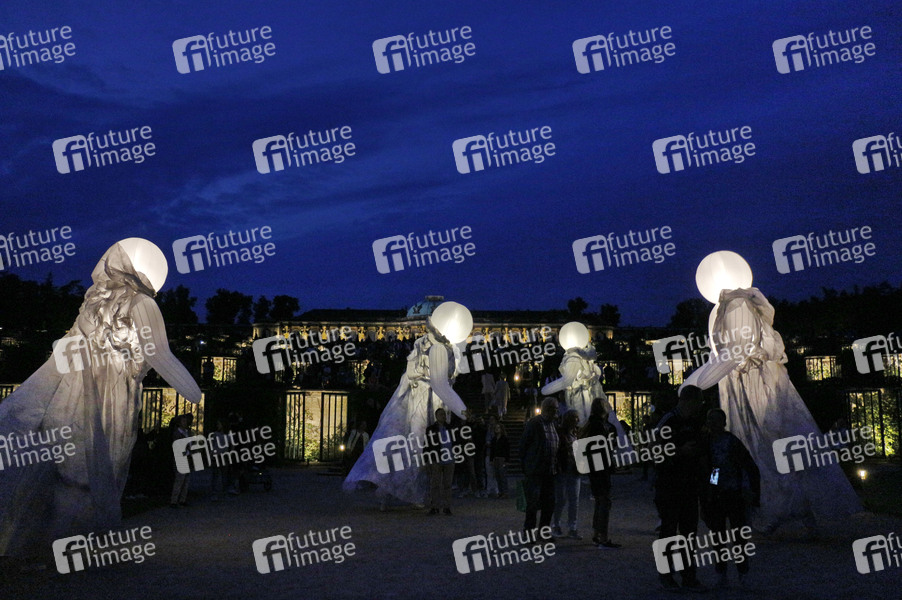Company Quidam's bei der Potsdamer Schlössernacht 2021 im Schlosspark Sanssouci. Potsdam, 21.08.2021